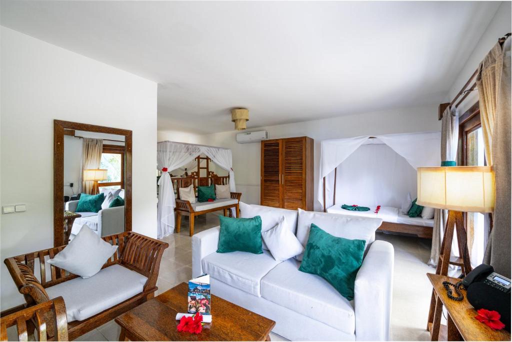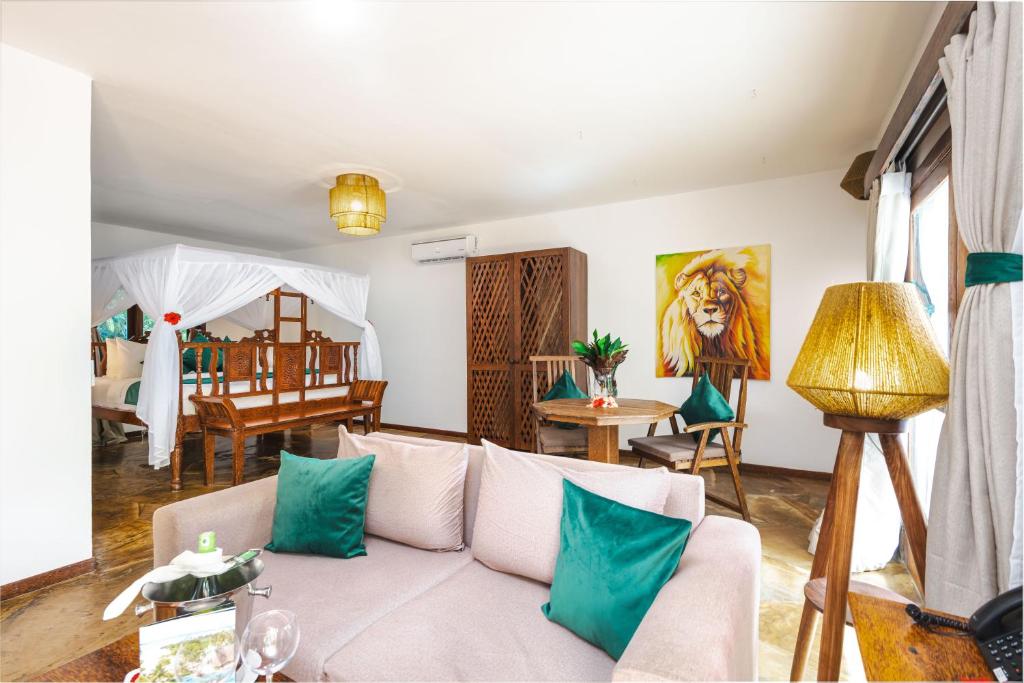 يضم المنتجع منطقة شاطئ خاص، كما تتوفر خدمة تأجير السيارات. تقع نونغوي على بُعد 38 كم من وايت بارادايس زنجبار، بينما تقع كيندوا على بُعد 36 كم. أقرب مطار هو مطار عبيد أماني كرومي الدولي، على بُعد 28 كم من المنتجع.
