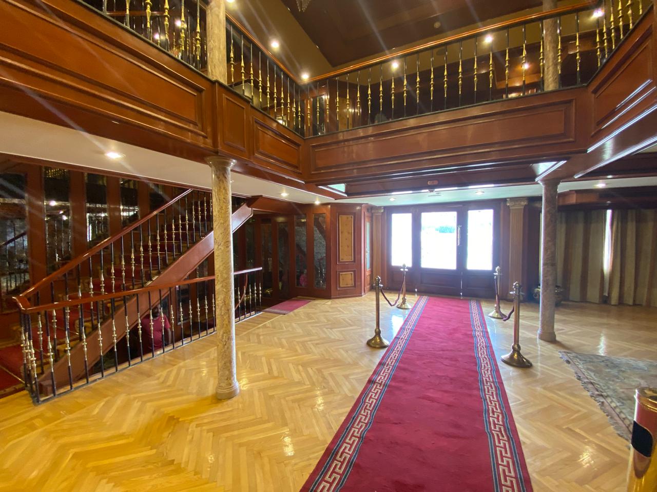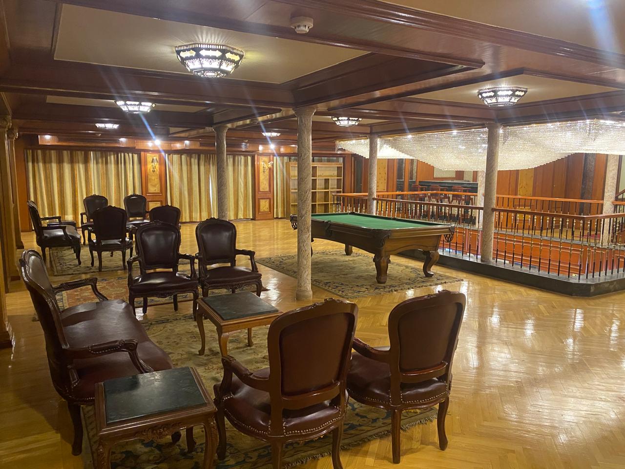 • Large sun deck featuring a swimming pool, jacuzzi, lounge chairs, and a bar A luxurious one-room restaurant with seating for 160 guests and an open buffet